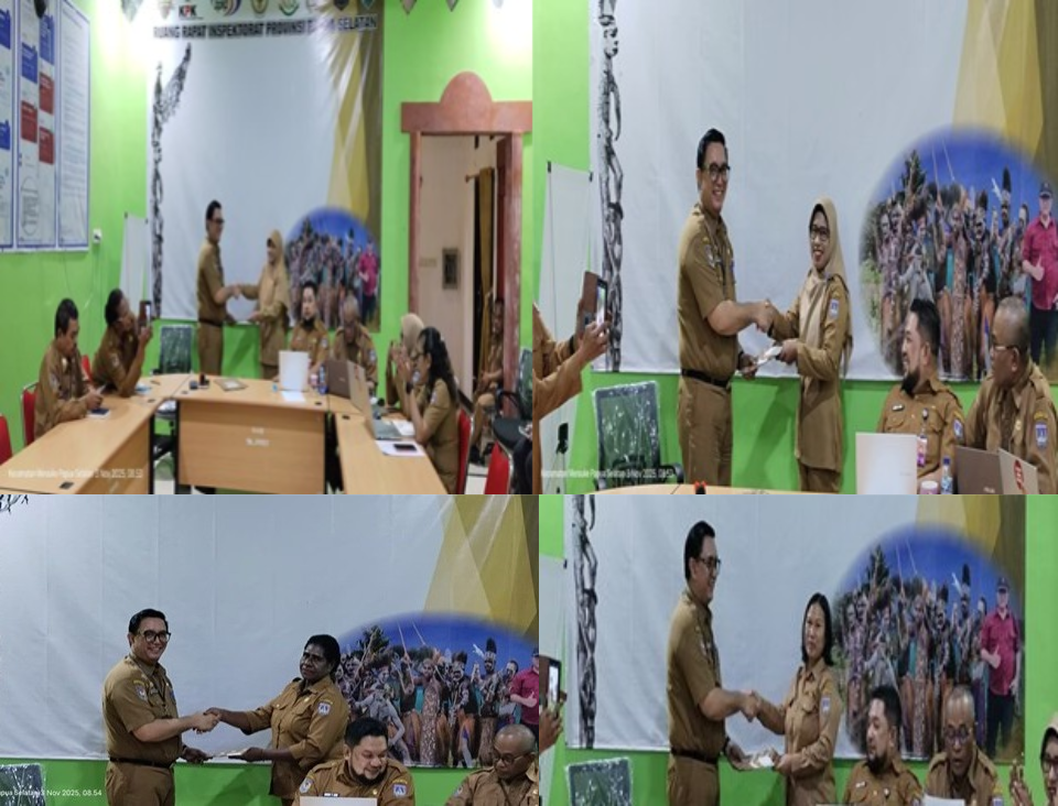 Pada kesempatan yang sama, diserahkan Surat Keputusan Gubernur Papua Selatan tentang kenaikan pangkat kepada lima pegawai Inspektorat yang telah memenuhi syarat, yaitu: